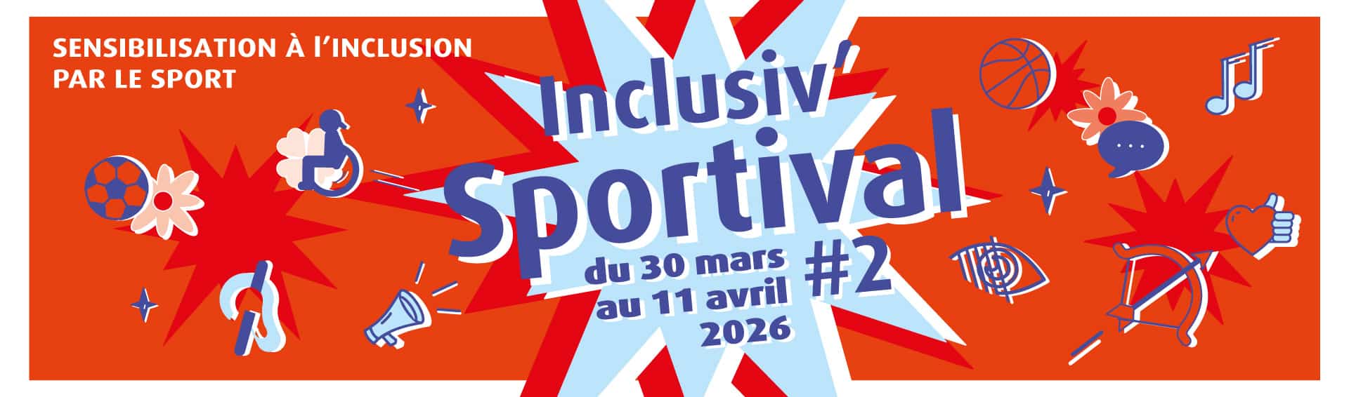 Du 30 mars au 11 avril, l’Inclusiv’Sportival revient avec un programme encore plus riche sur 2 semaines pour sensibiliser, partager et se dépasser ensemble.